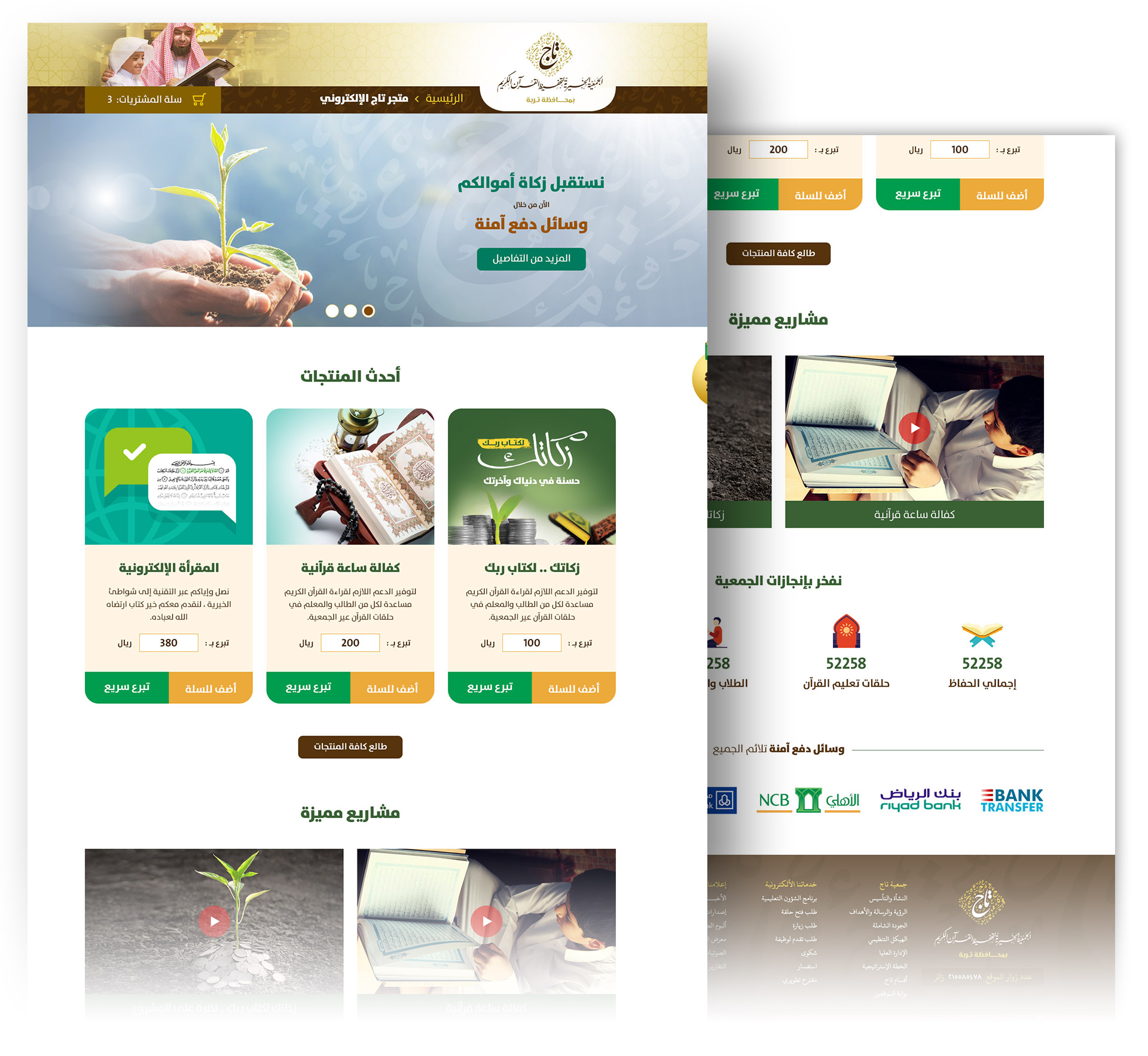 جمعية رائدة ومتميزة في برامجها وكوادرها وخدماتها، غايتها ربط المستفيدين بكتاب الله تعالى. بدأت مهمتنا في جمعية تاج ببناء موقع ومتجر الكتروني متخصص لجهات الخيرية وتسهيل عمليات التبرع بالمتجر الالكتروني والربط بوسائل الدفع الإلكتروني الحديثة ومتابعة لحضيه لكل مشروع وحجم الإنجاز فيه.